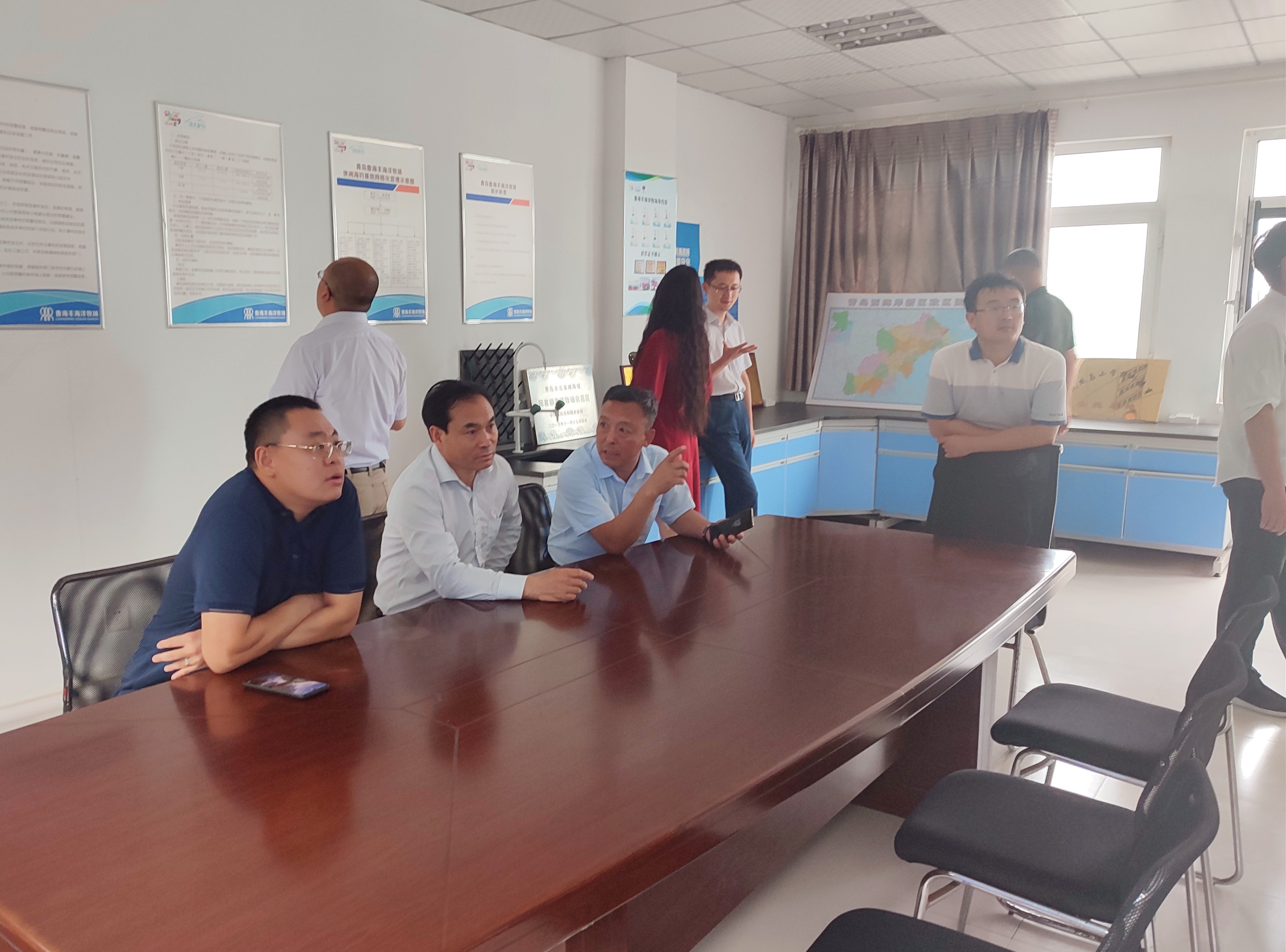 8月28日下午,農業農村部考察組蒞臨我司考察調研,考察組由農業農村部漁業漁政管理局一級巡視員李書民帶隊,中國水產科學研究院黃海水產研究所副所長李健、青島市海洋發展局副局長王曉訓、青島市漁業協會副會長劉云峰陪同調研,集團總經理劉潤澤接待了考察組。
